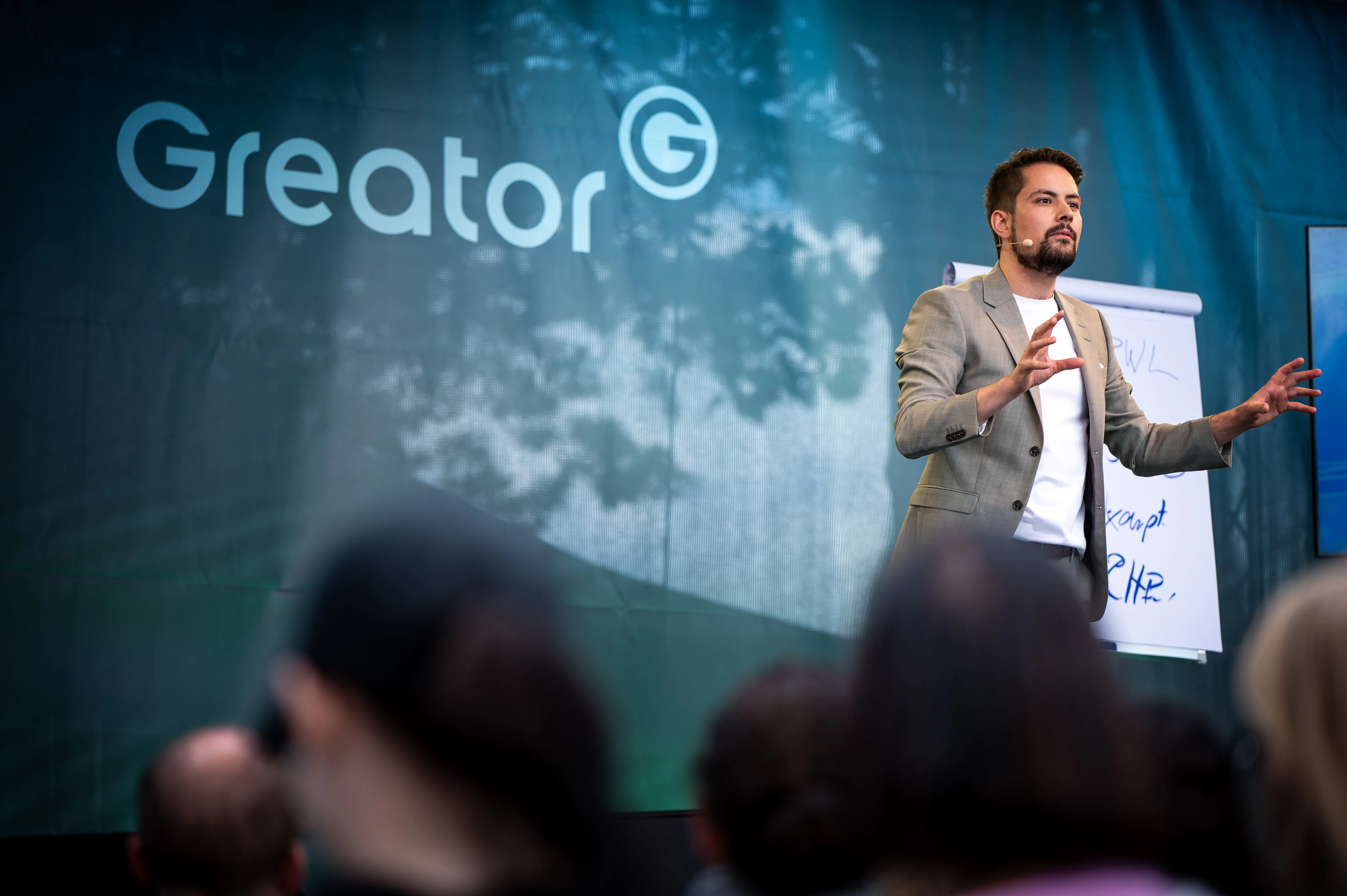Auch Gérôme Ehrler stand bereits als Speaker auf der Greator-Stage.Auf dem Event mit über 16’000 Menschen teilte er seine eigene Reise vom Banker zum Schauspieler und Mentor und sprach über berufliche Klarheit, mutige Entscheidungen und die Umsetzung der eigenen Berufung.